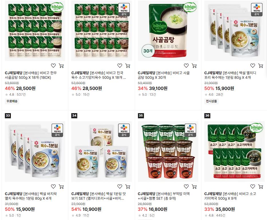 CJ제일제당 다양한 제품을 할인 판매하네요.