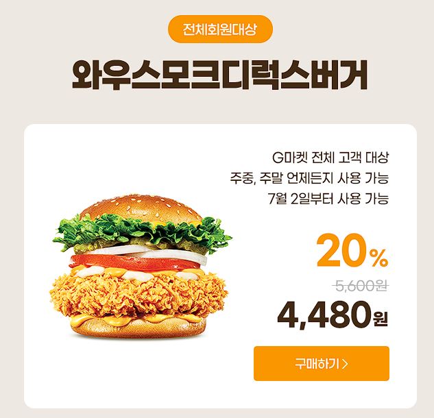 할인 메뉴 : 와우스모크디럭스버거, 와우스모크디럭스버거세트