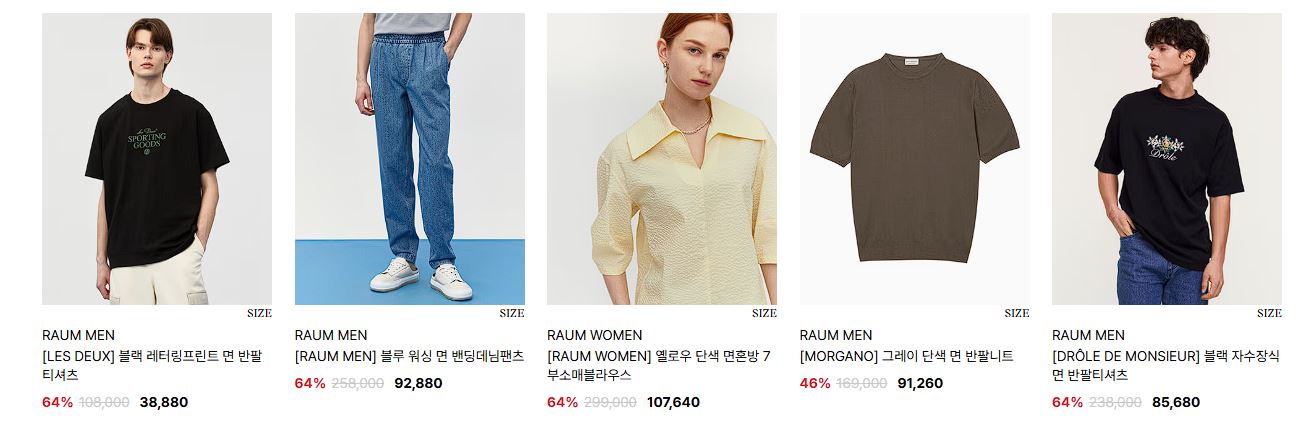 할인 품목 : 티셔츠, 원피스, 자켓 등