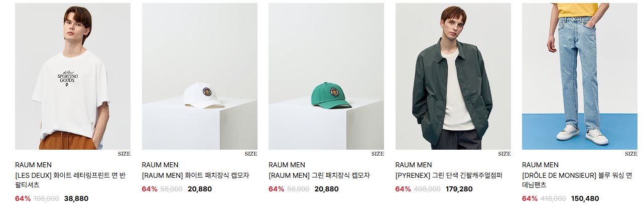 할인 품목 : 티셔츠, 원피스, 자켓 등