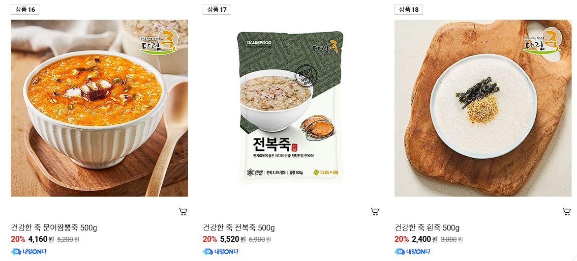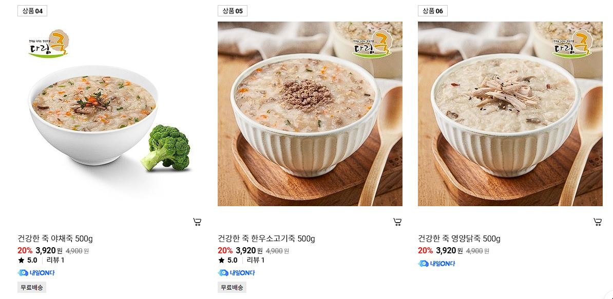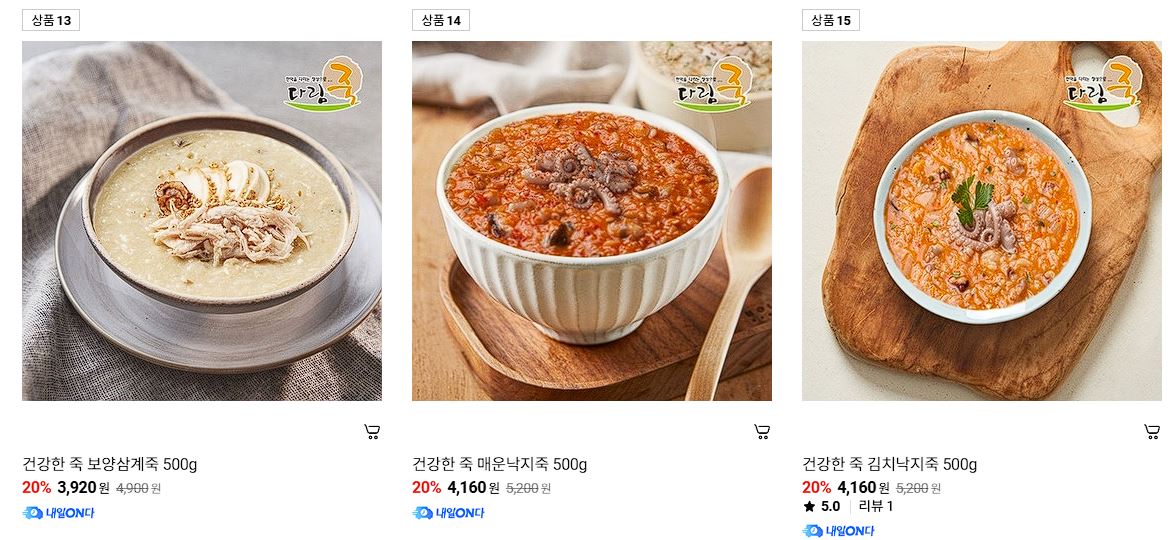 할인 품목 : 단팥죽, 단호박죽, 야채죽, 참치죽 등
