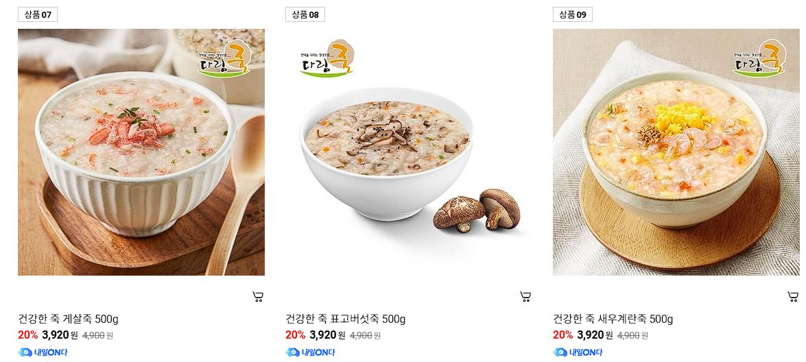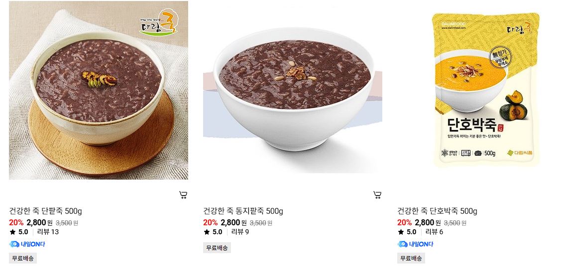할인 품목 : 단팥죽, 단호박죽, 야채죽, 참치죽 등