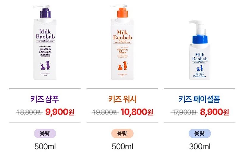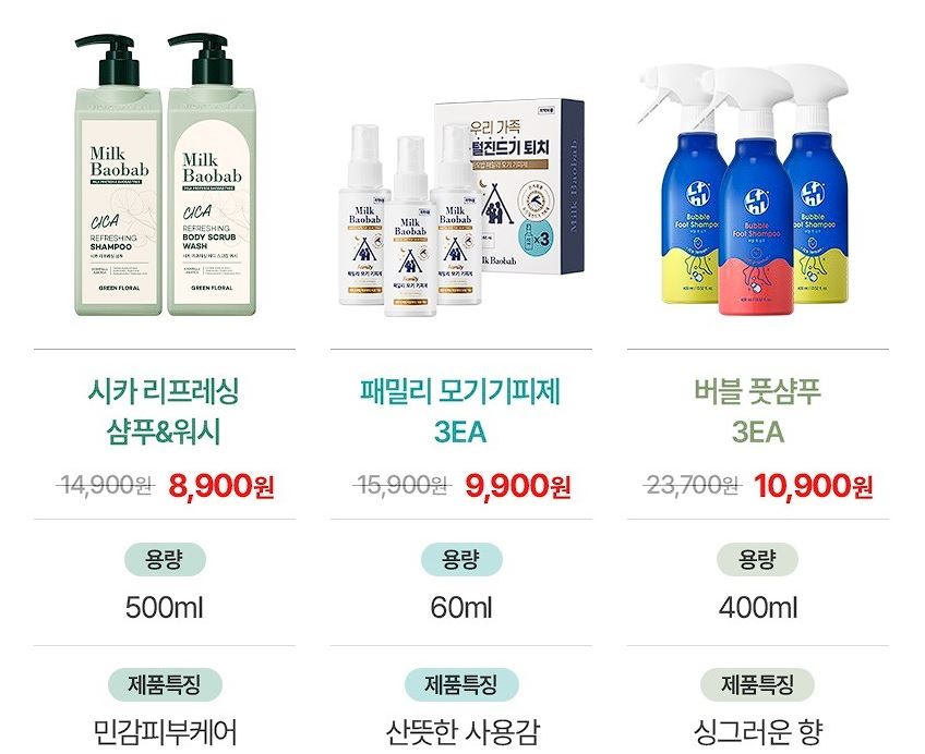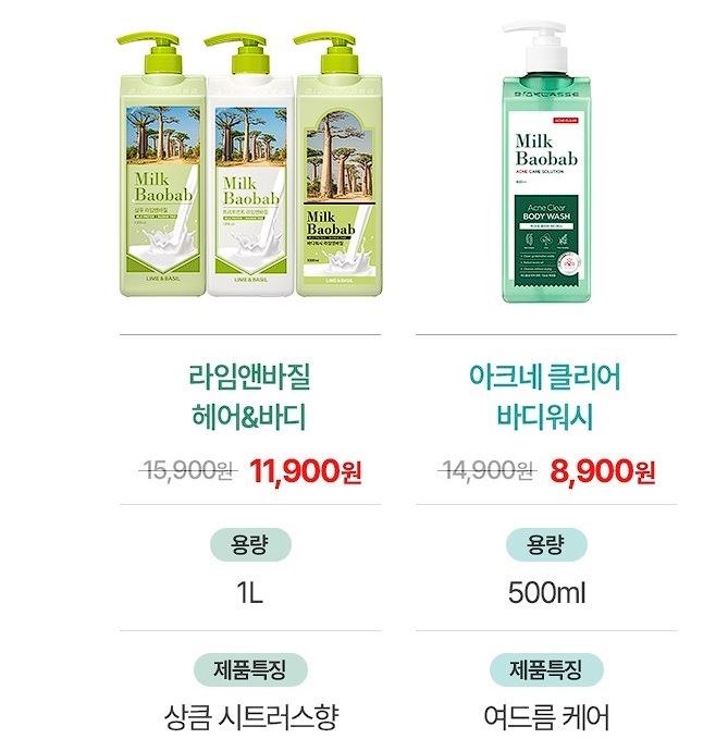 밀크바오밥 다양한 제품을 할인 판매하네요.