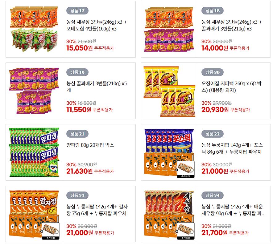 할인 품목 : 새우깡, 자갈치, 먹태깡, 포테토칩 등