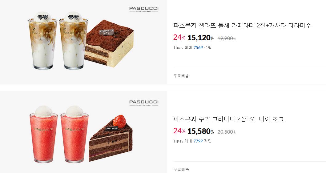 파스쿠찌 다양한 메뉴를 할인 판매하네요.