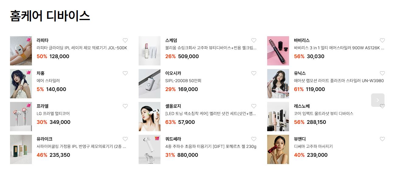 할인 품목 : 화장품, 치약, 파우치, 미용기기 등