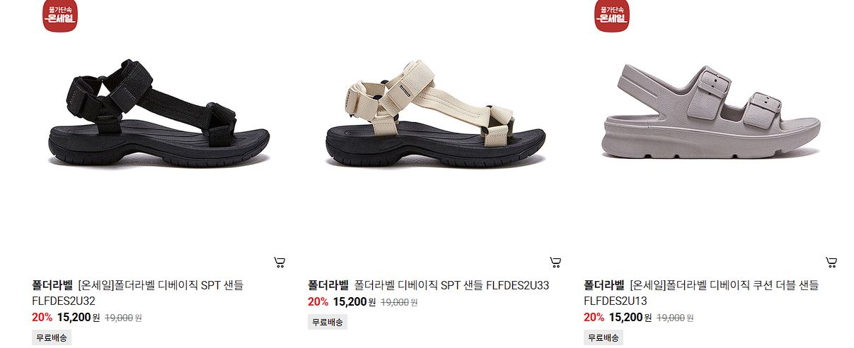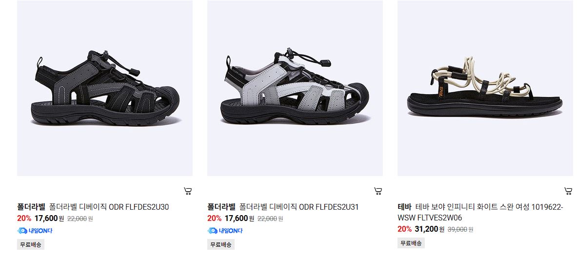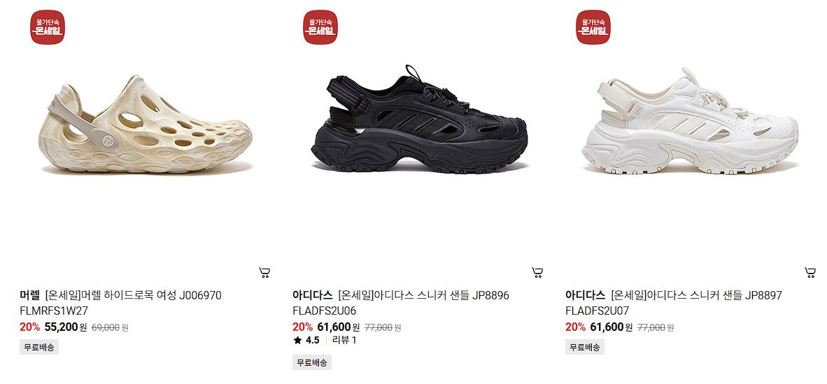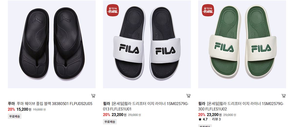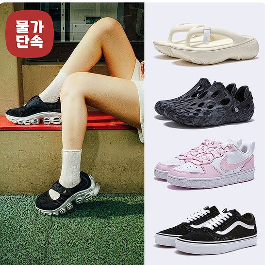 할인 품목 : 운동화, 샌들, 슬리퍼 등