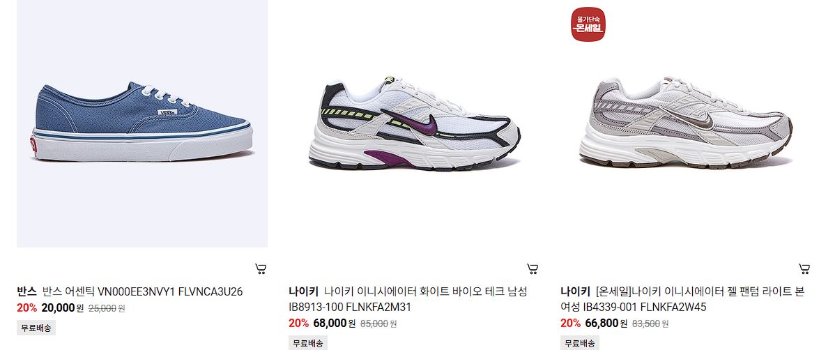 나이키/반스/아디다스 외 할인 이벤트 정보 포스팅입니다.