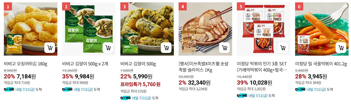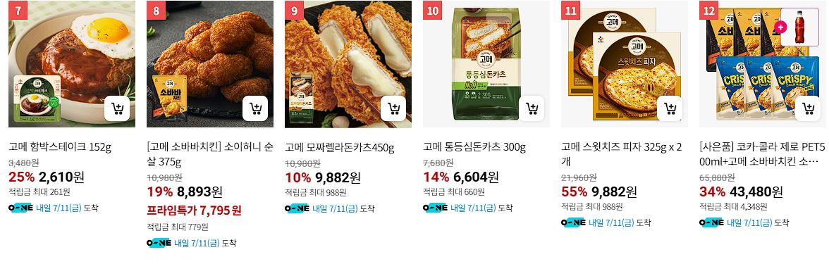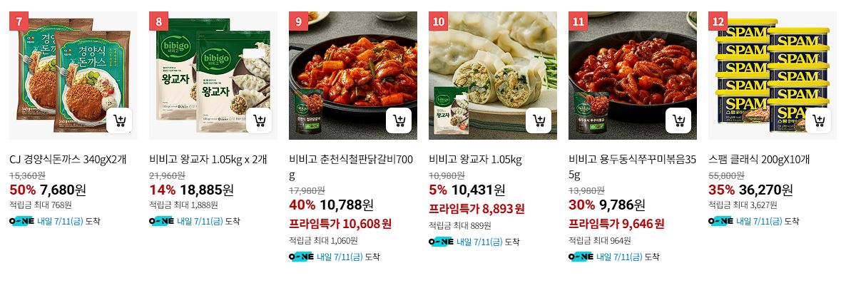 할인 품목 : 햇반, 만두, 피자, 스팸 등