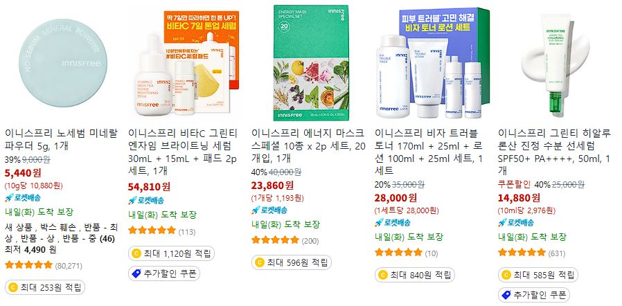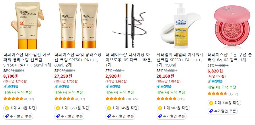 쿠팡 다양한 화장품을 할인 판매하네요.