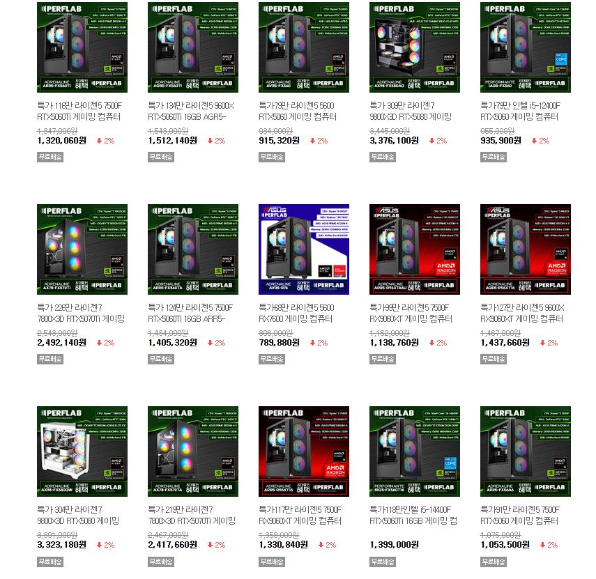 퍼플랩 다양한 완본체 PC를 할인 판매하네요.