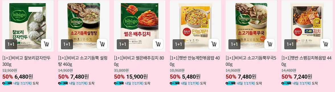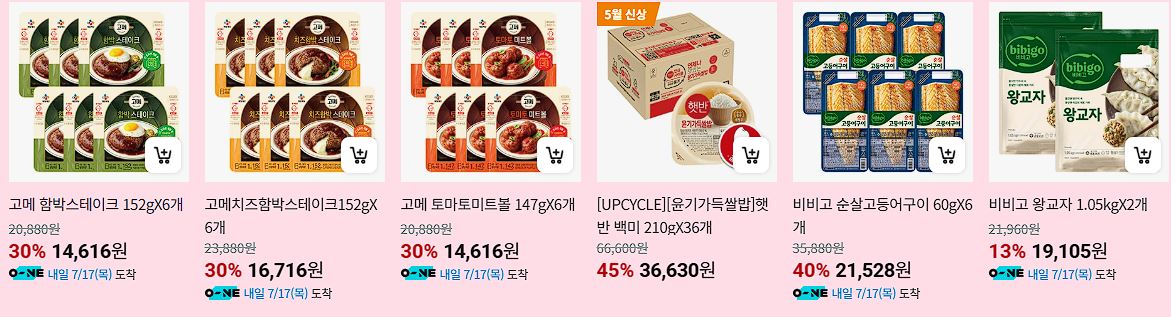 할인 품목 : 만두, 햇반, 함박스테이크 등