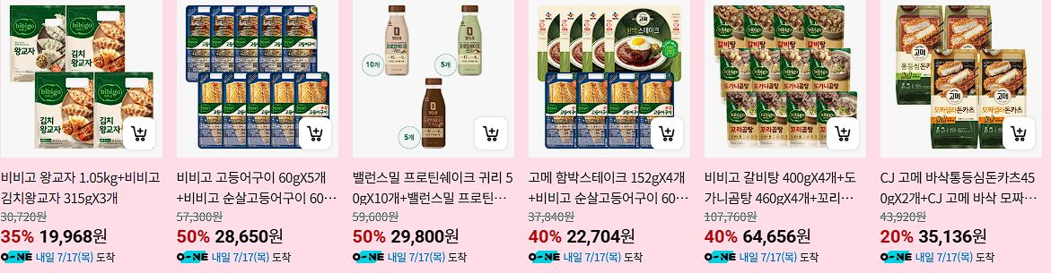 할인 품목 : 만두, 햇반, 함박스테이크 등