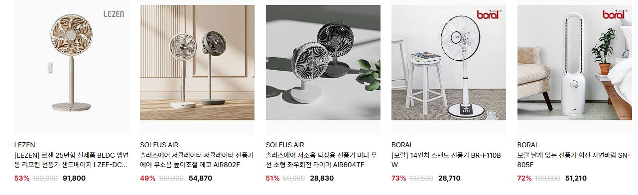 할인 품목 : 선풍기, 수납장, 수건 등
