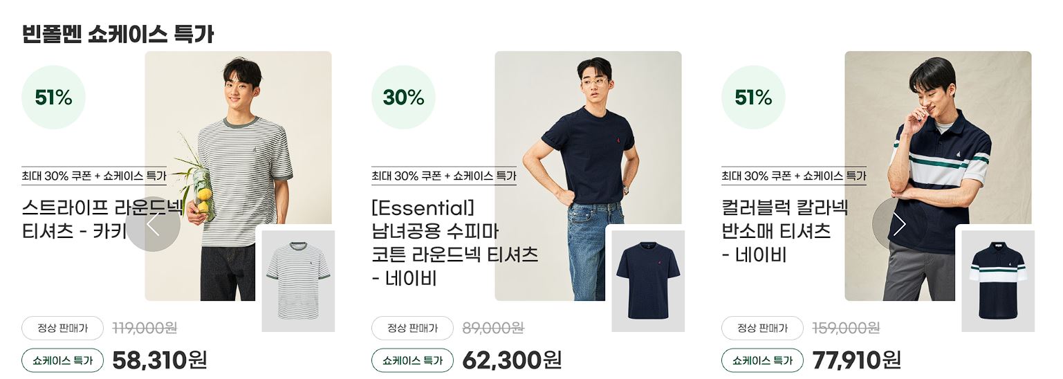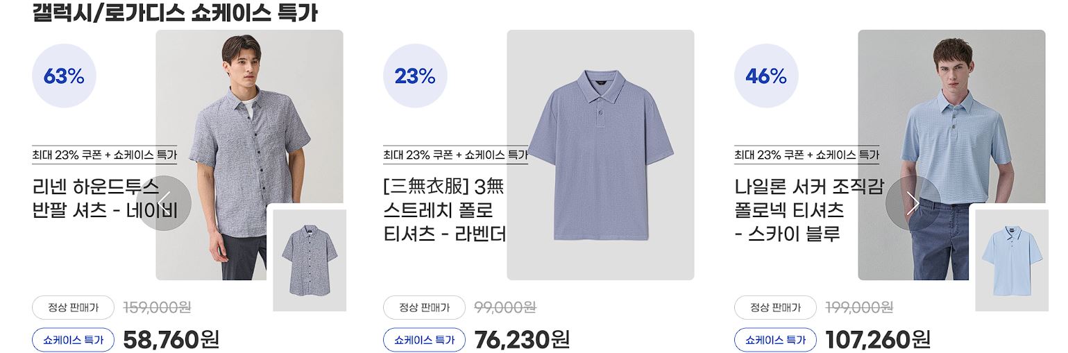 할인 품목 : 티셔츠, 모자, 셔츠 등