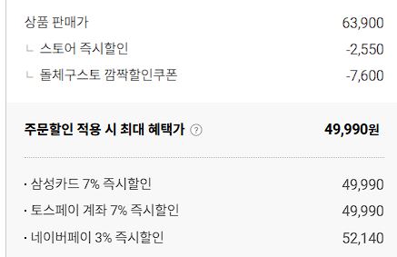 최대 할인가 49990원
