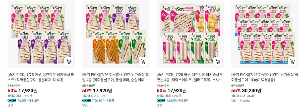할인 품목 : 닭가슴살, 햇반, 피자, 스팸 등