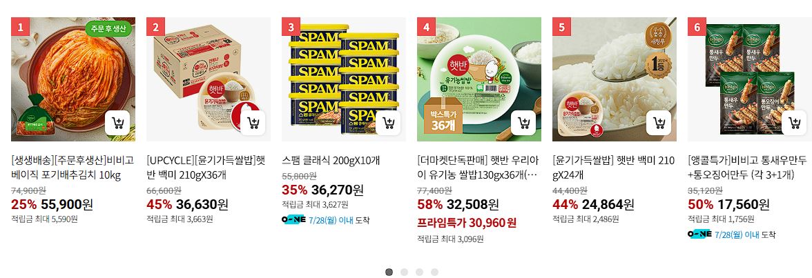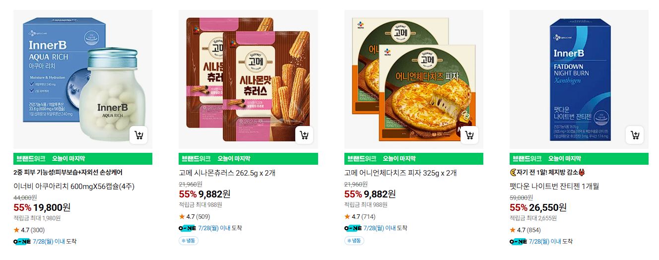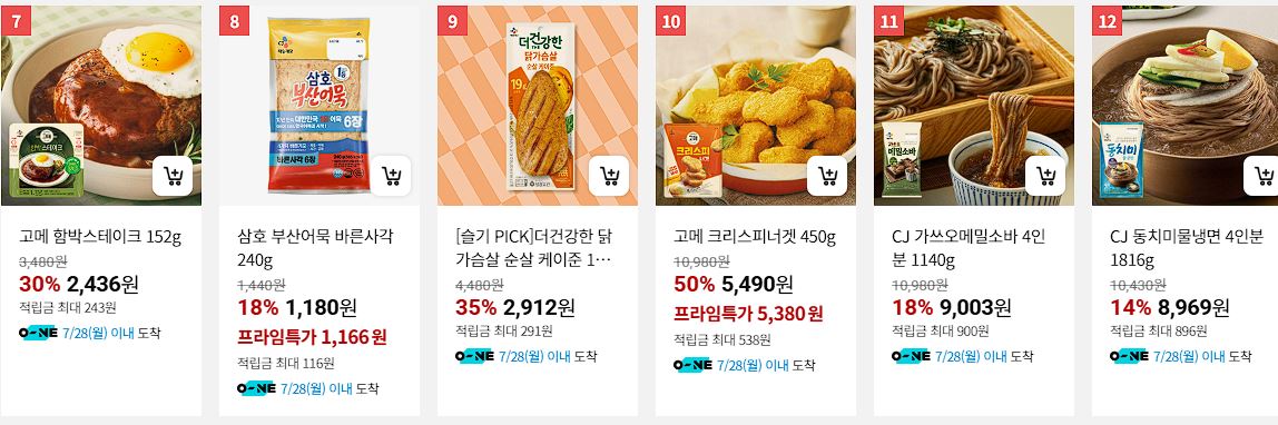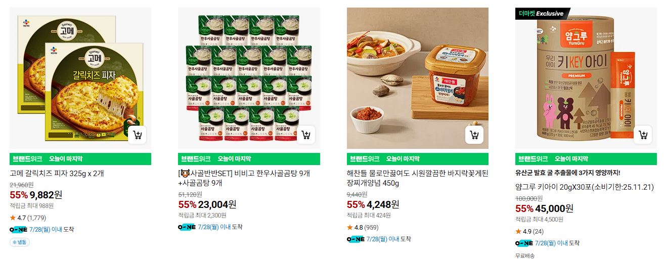 할인 품목 : 닭가슴살, 햇반, 피자, 스팸 등