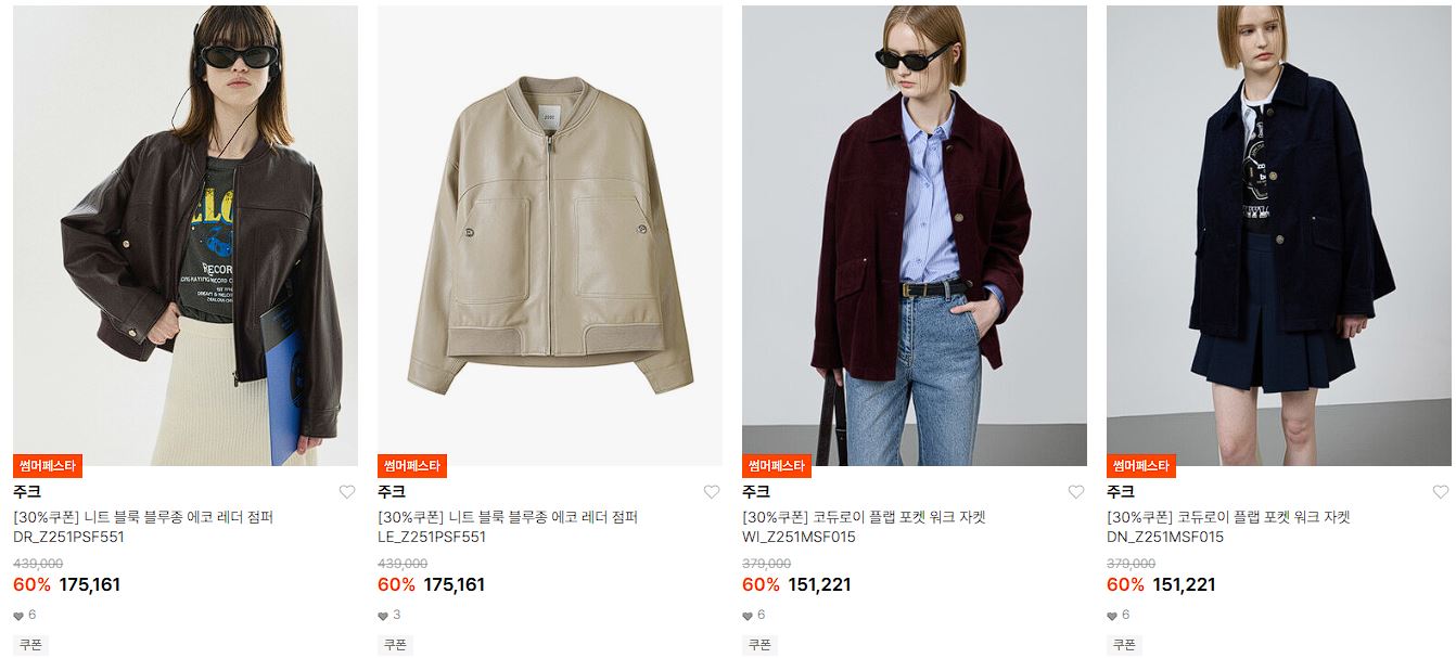 할인 품목 : 니트, 티셔츠, 자켓 등