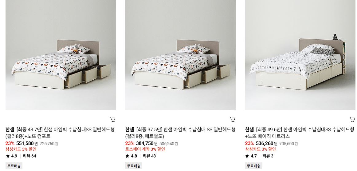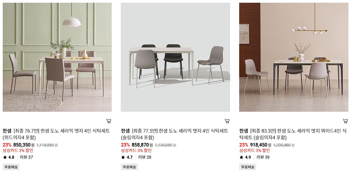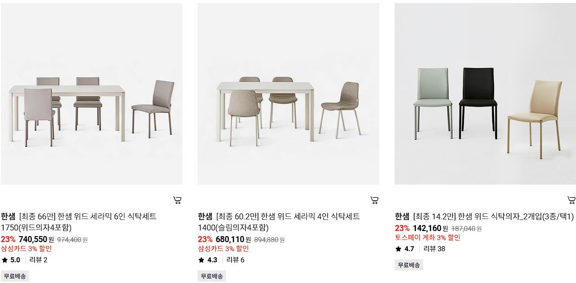 한샘 다양한 제품을 할인 판매하네요.