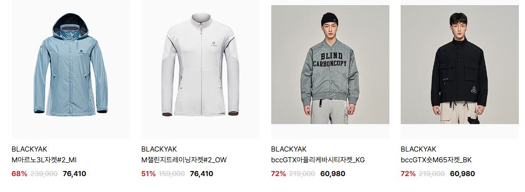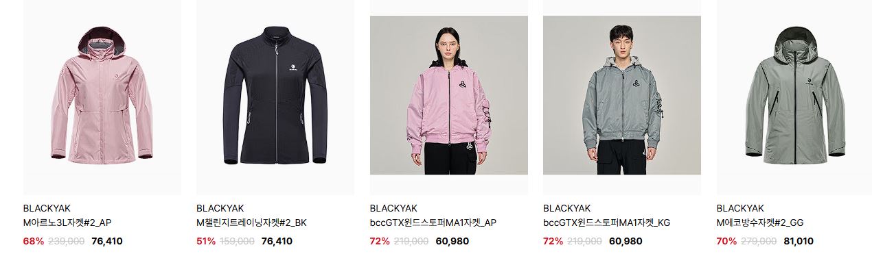 블랙야크 다양한 제품을 할인 판매하네요.