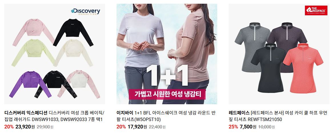 할인 품목 : 티셔츠, 팬츠, 샌들, 모자 등