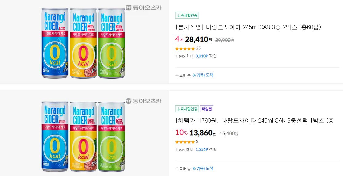 할인 품목 : 나랑드사이다, 오로나민씨 등