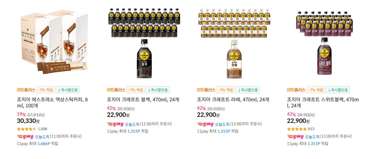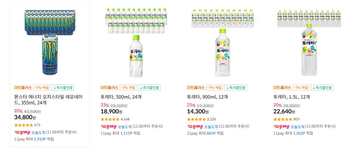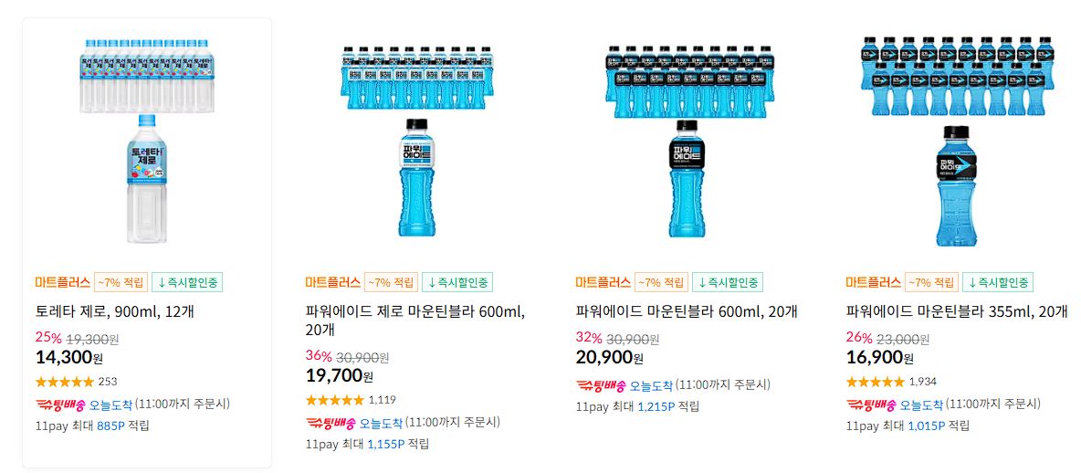 할인 품목 : 조지아, 토레타, 파워에이드 등