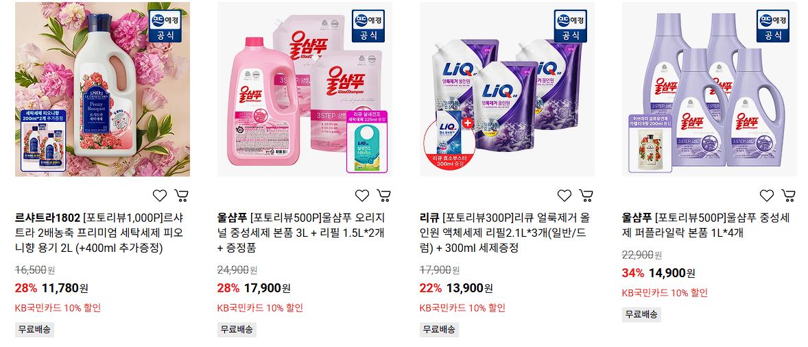 할인 품목 : 샴푸, 바디워시, 세재, 치약 등