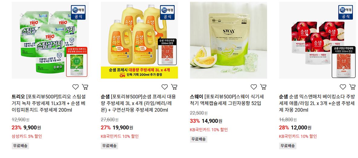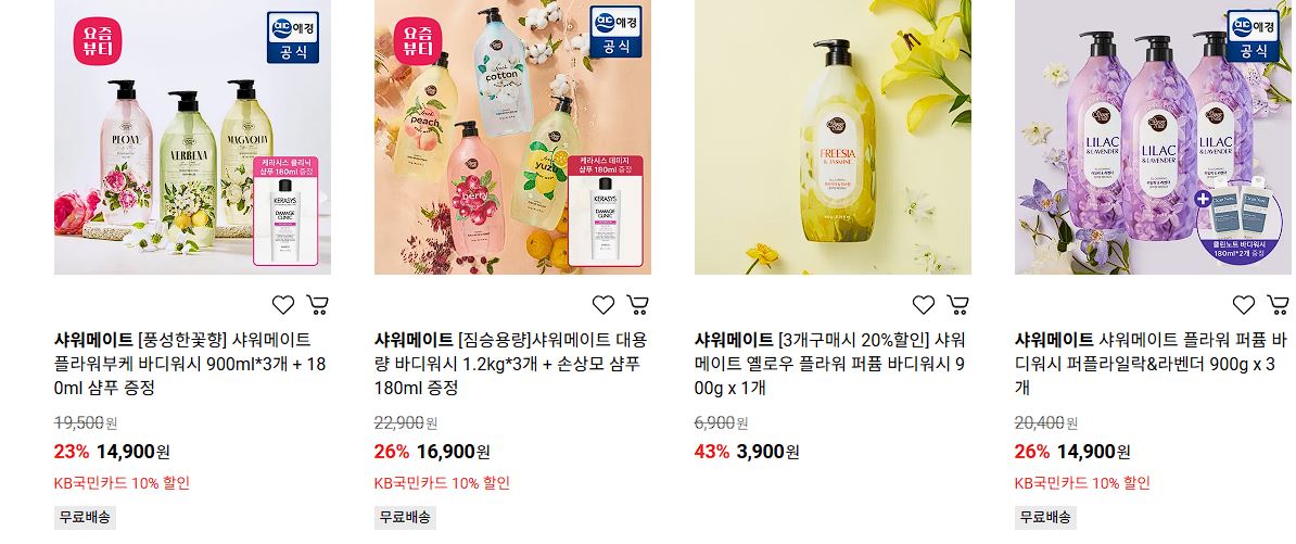 할인 품목 : 샴푸, 바디워시, 세재, 치약 등