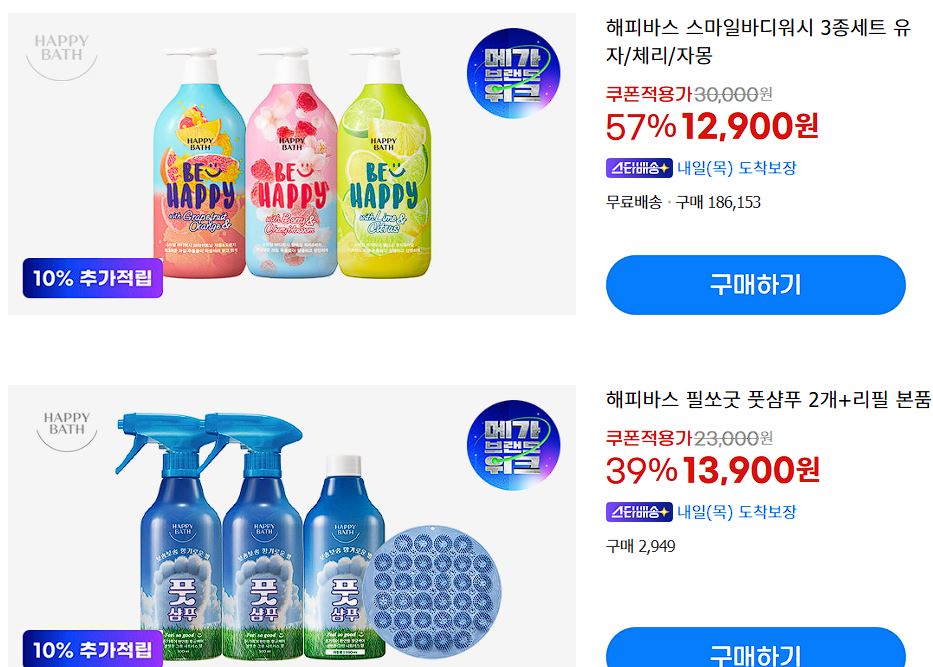 할인 품목 : 화장품, 바디워시, 풋샴푸 등