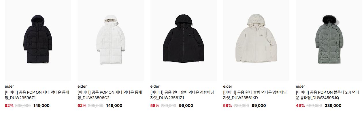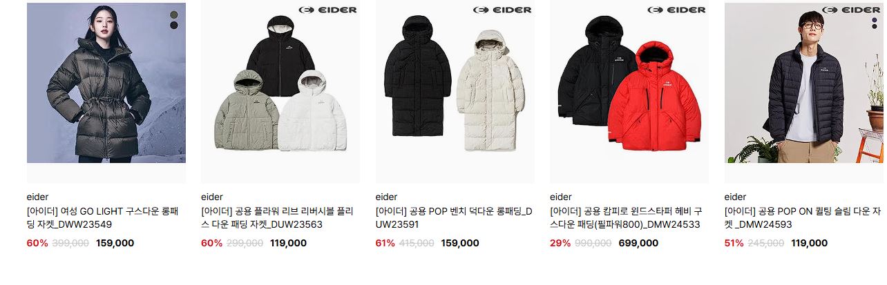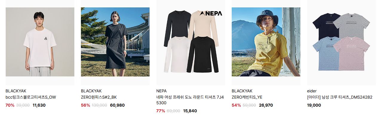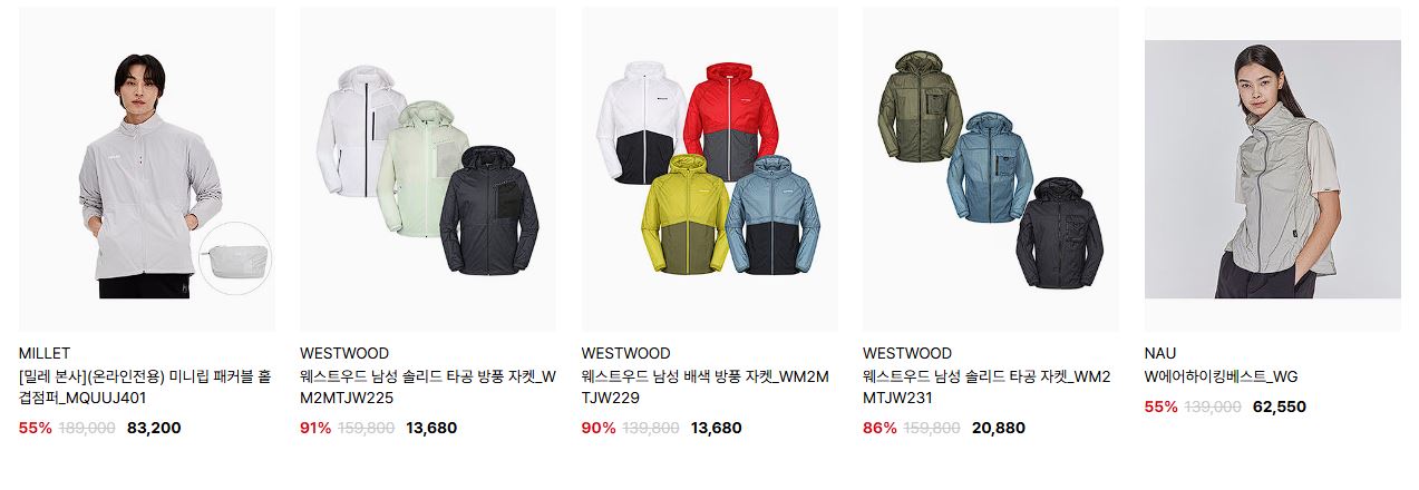 할인 품목 : 점퍼, 티셔츠, 팬츠, 자켓 등