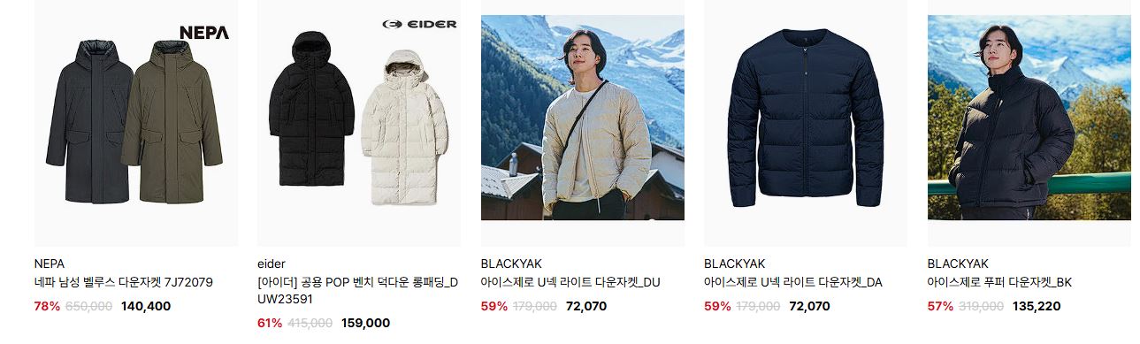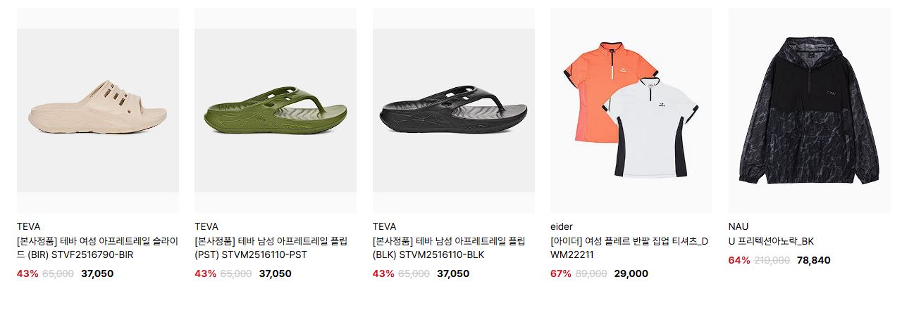 아웃도어 다양한 제품을 할인 판매하네요.