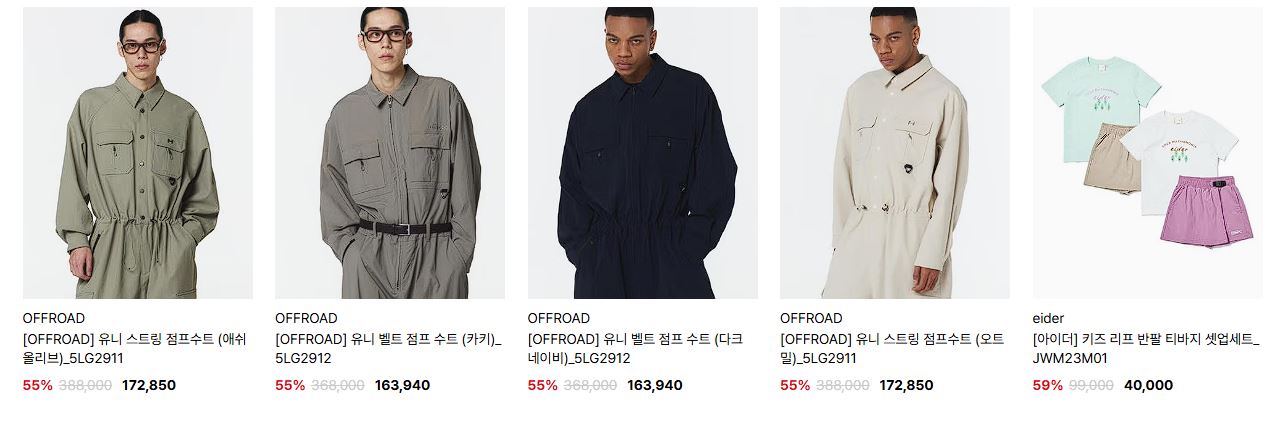 할인 품목 : 점퍼, 티셔츠, 팬츠, 자켓 등