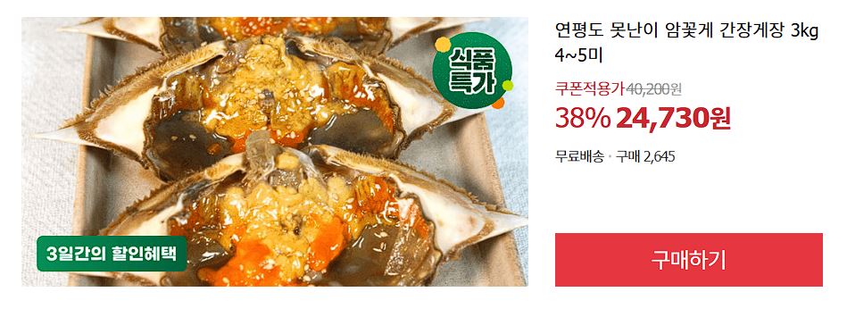할인 품목 : 간장게장, 순살치킨, 사골곰탕 등