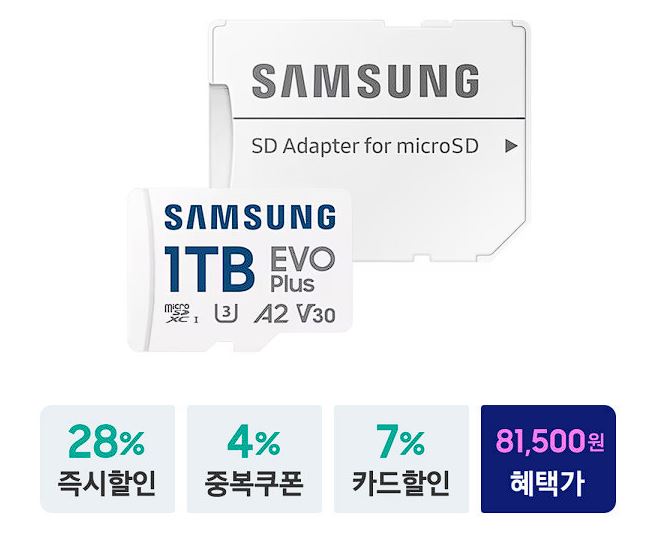 삼성 마이크로SD카드 EVO PLUS 1TB 할인 정보 [링크]