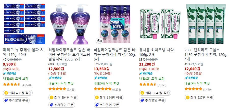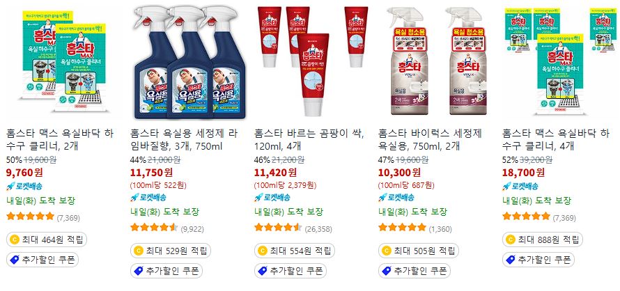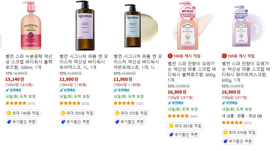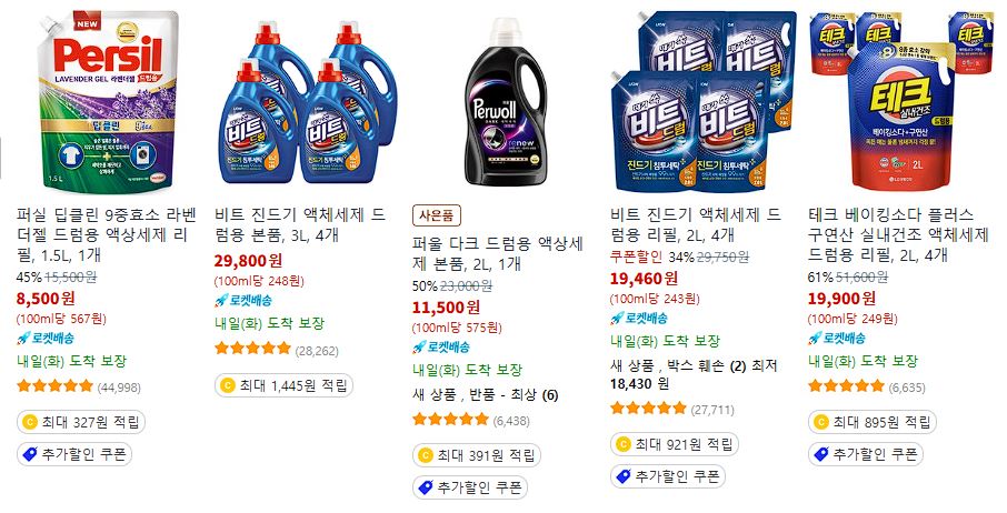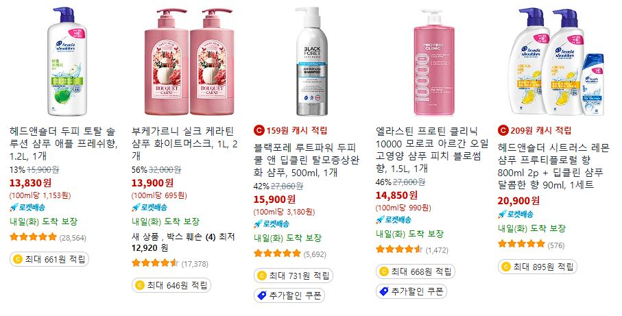 할인 품목 : 샴푸, 바디워시, 세제, 치약 등