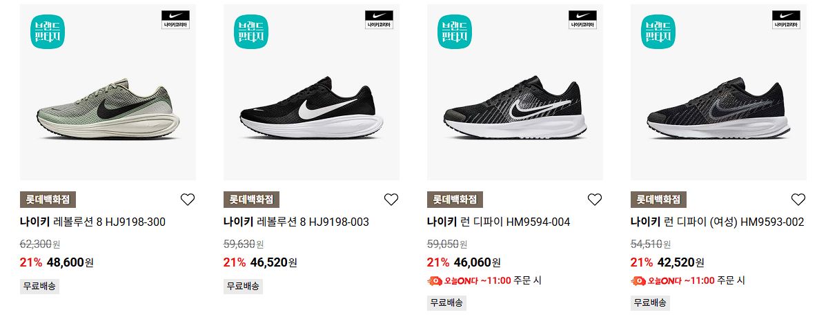 나이키 다양한 제품을 할인 판매하네요.