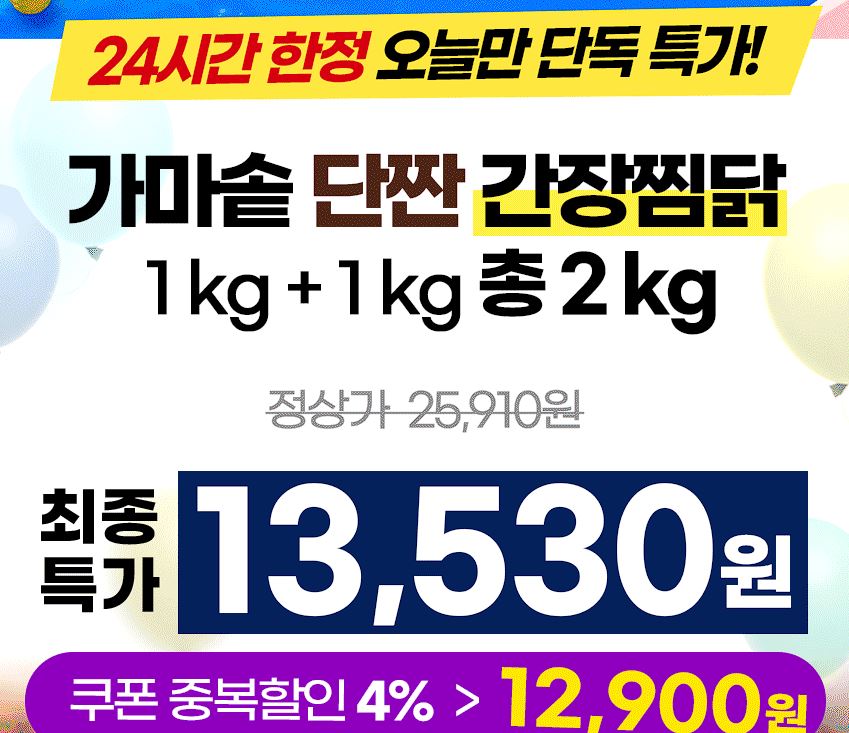 가마솥 솥뚜껑 간장 찜닭 1kg x 2팩 할인 정보 [링크]