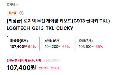 로지텍 G913 텐키리스 무선 게이밍 키보드 전시상품 할인 정보 [링크]
