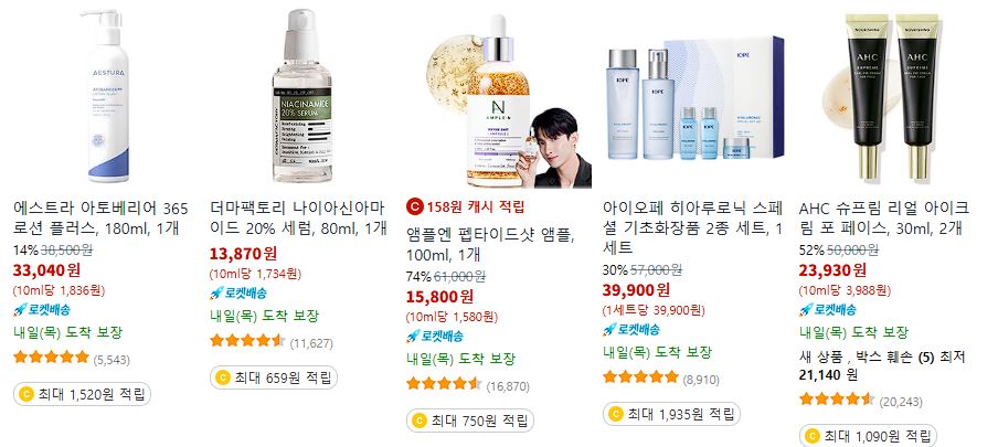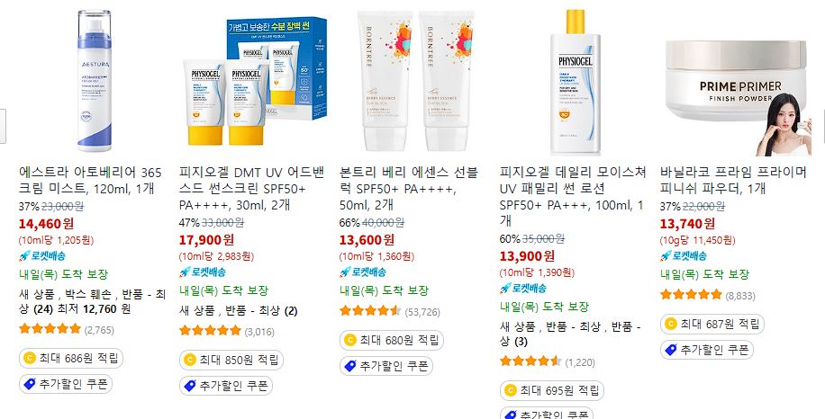 할인 품목 : 향수, 선크림, 마스크, 세럼 등