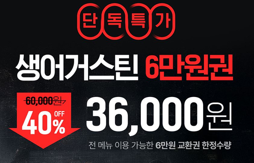 생어거스틴 전액교환권 6만원권 40% 할인 정보 포스팅입니다.