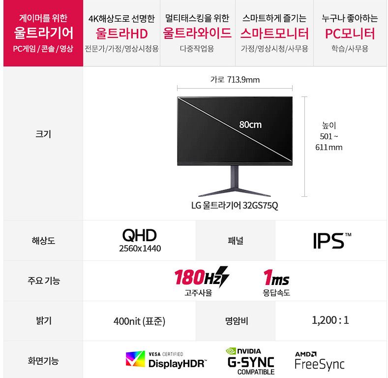 LG 울트라기어 32GS75Q QHD IPS 180Hz 게이밍모니터 할인 정보 [링크]