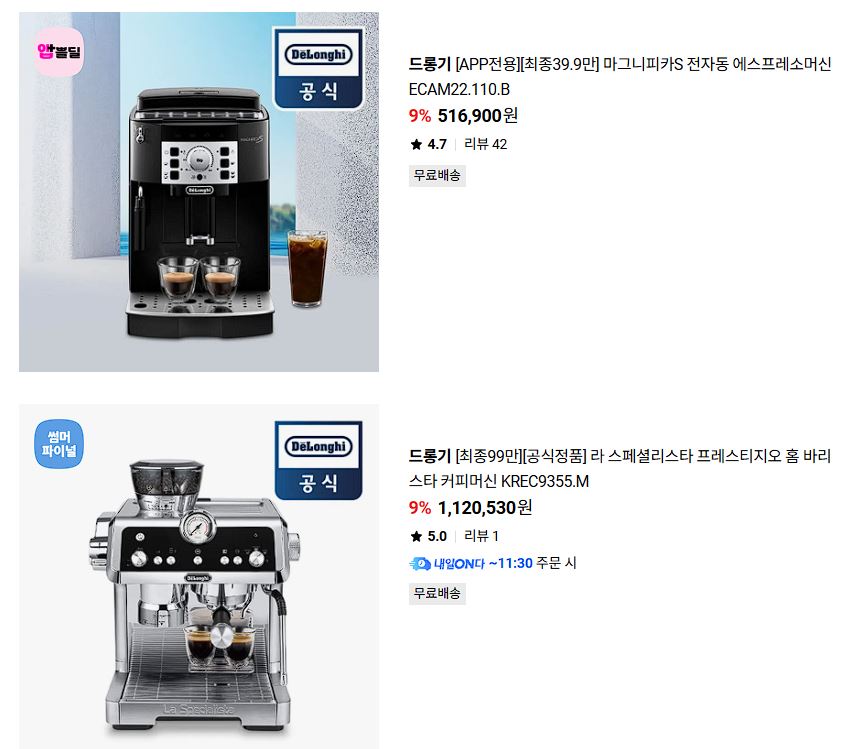 | 드롱기 데디카 아르떼 반자동 커피머신 할인 (0) | 2025.08.13 |