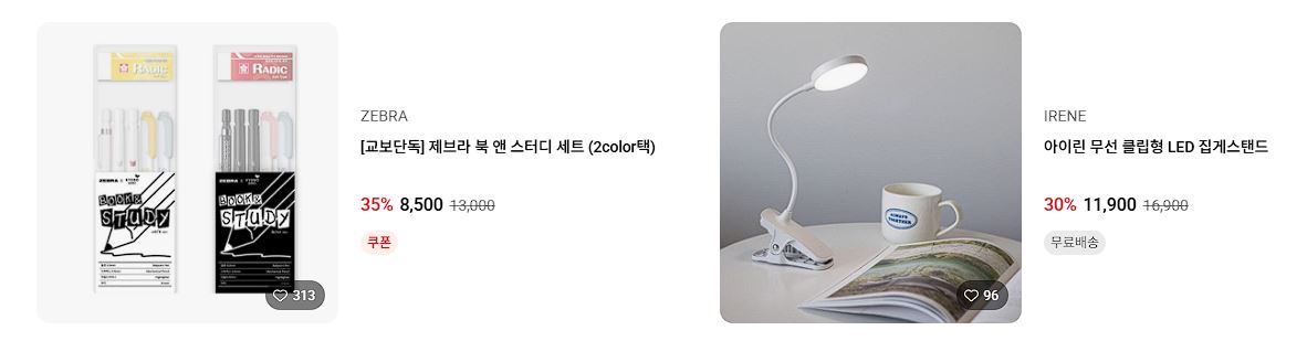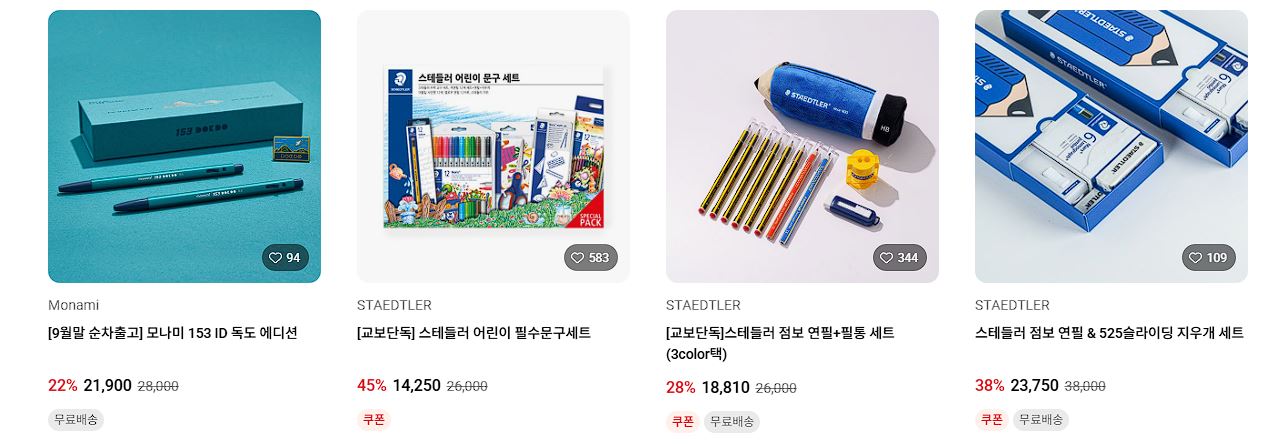 할인 품목 : 필기도구, 주방용품, 가전 등