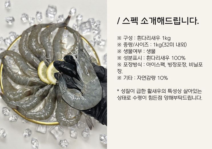 국내산 흰다리 왕새우 대하 생물 32미내외 할인 정보 [링크]