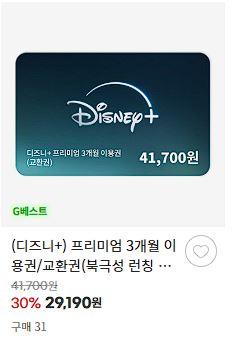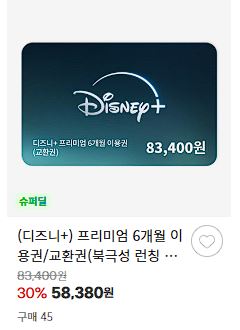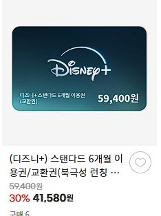 디즈니+ 이용권 할인 판매하네요.