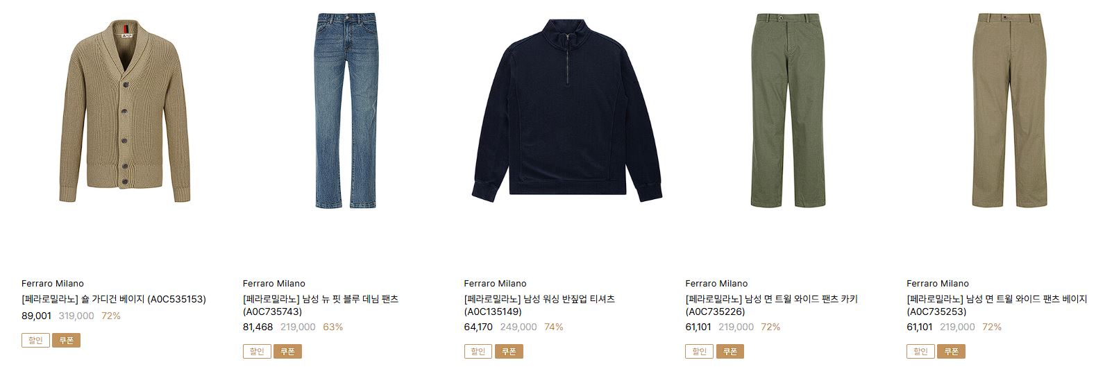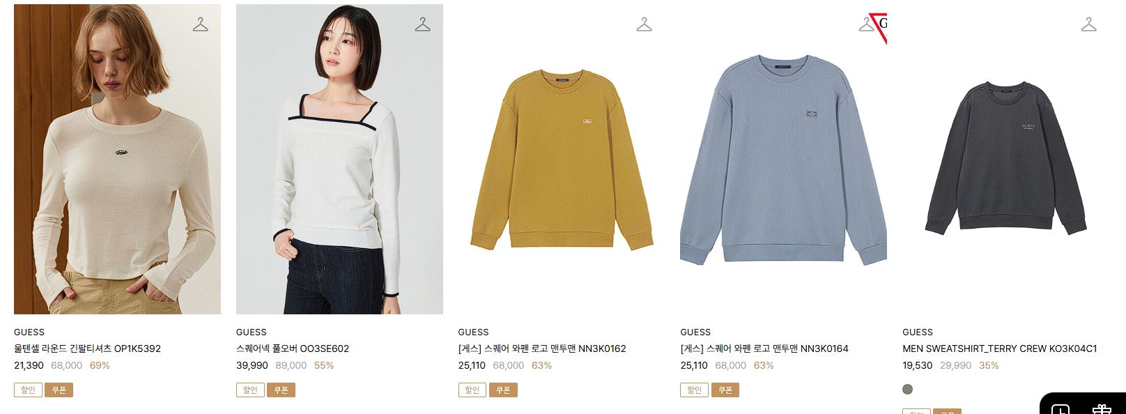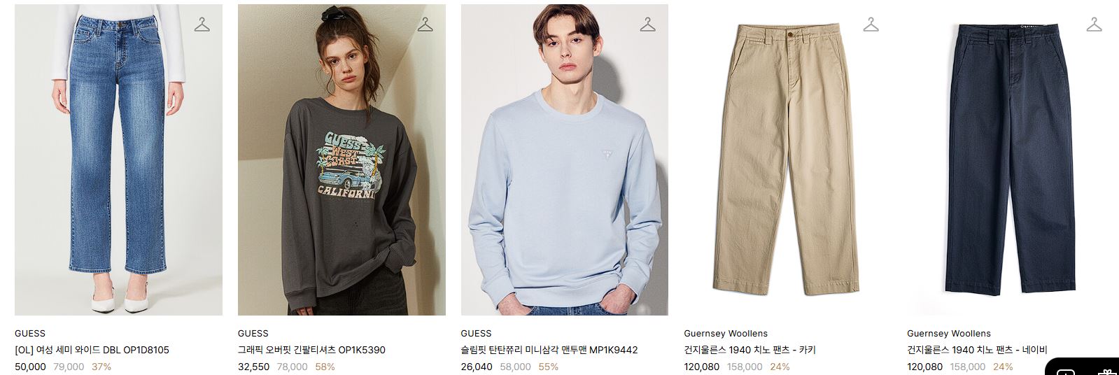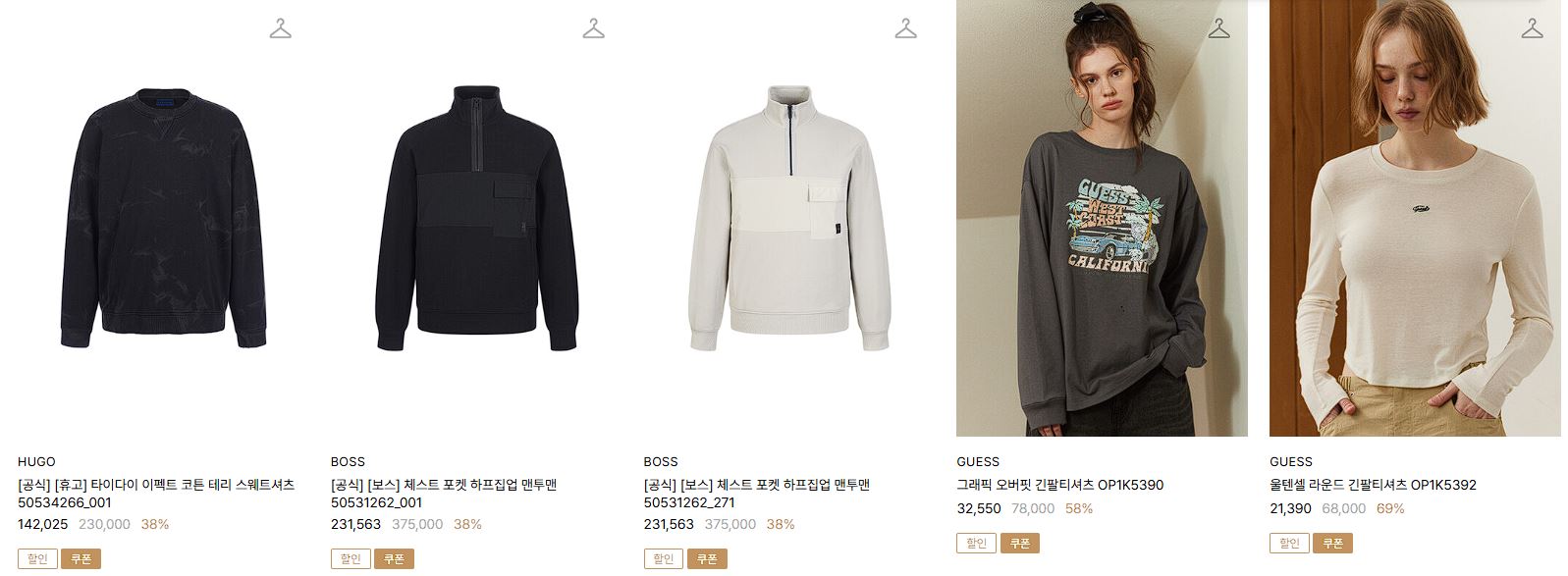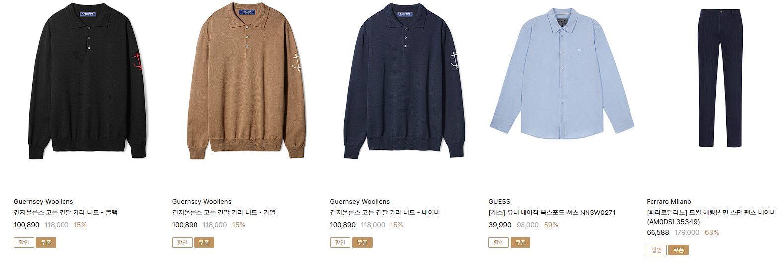 할인 품목 : 티셔츠, 팬츠, 자켓 등