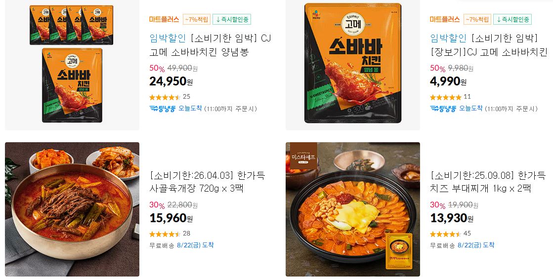 할인 품목 : 고메소바바치킨, 과자, 부대찌개 등