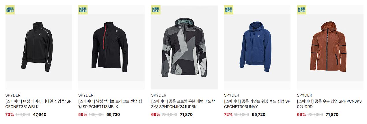 스파이더 다양한 제품을 할인 판매하네요.